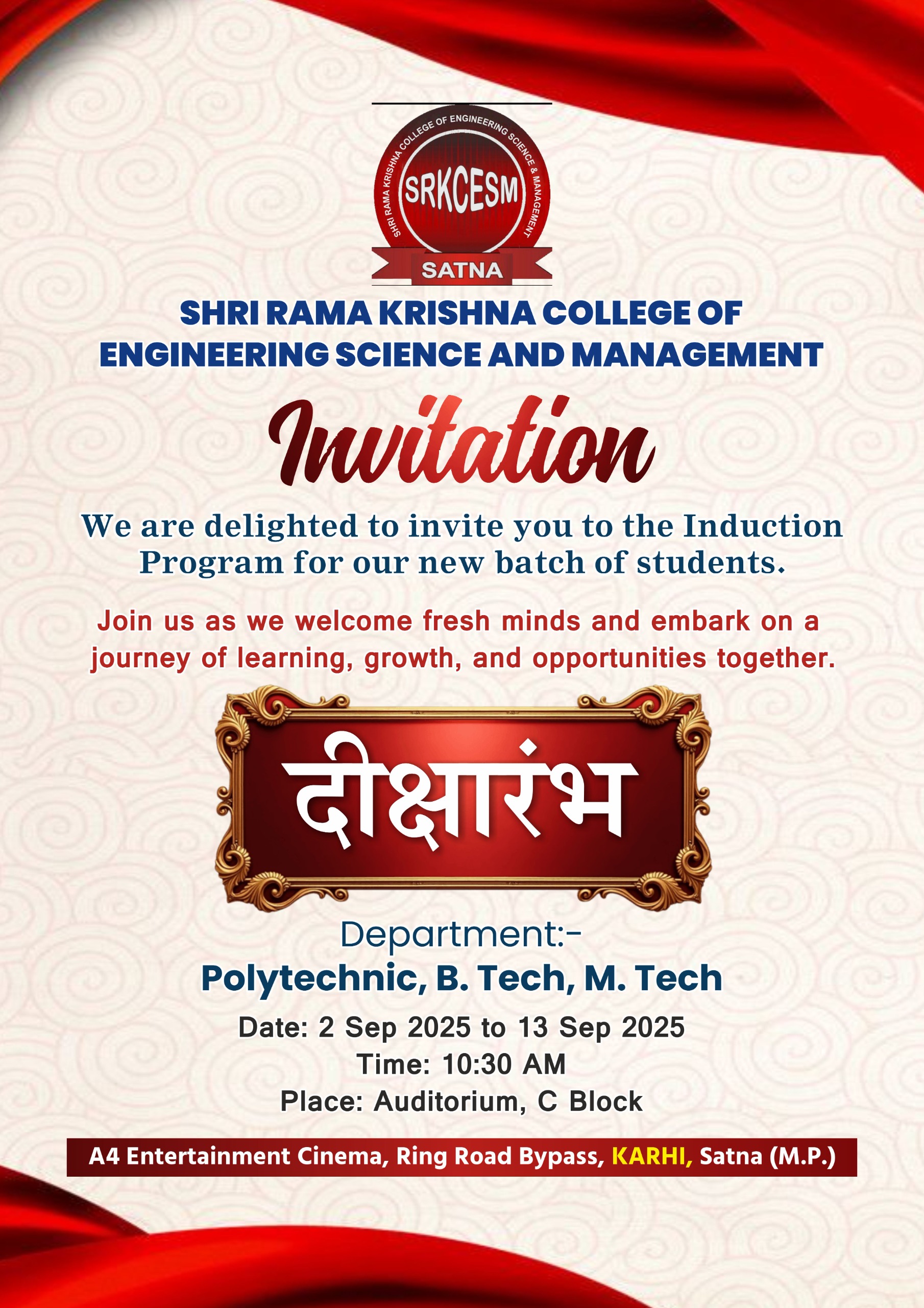 - Induction Program "दीक्षारंभ" for Polytechnic, B.Tech, and M.Tech Students